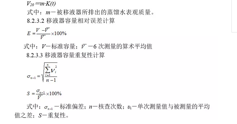 根据测定值m和检定时蒸馏水的温度所对应的K(t) 值,即可求出被检移液器在标准温度20℃时的实际容量值。