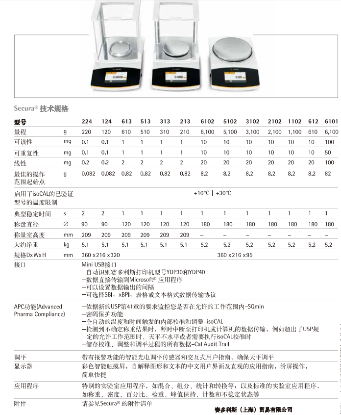 - 全自动内部调整功能isoCAL始终确保高称量精度